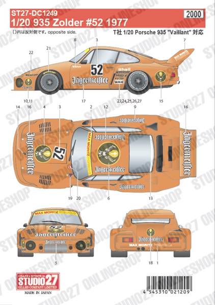 [ Back-order ] Studio27 DC1249 1:20 Porsche 935 Zolder #52 1977 for T Original Decals