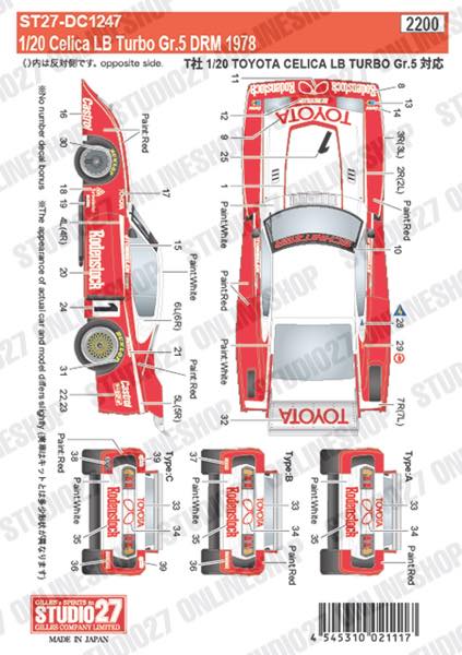 [ Back-order ] Studio27 DC1247 1:20 Celica LB Turbo Gr.5 DRM 1978 for T Original Decals