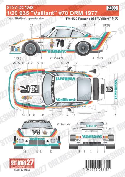 [ Back-order ] Studio27 DC1248 1:20 935 "Vaillant" #70 DRM 1977 for T Original Decals