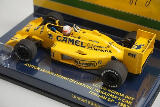 1:43 MINICHAMPS 540874311 Lotus Honda 99T Italian GP 1987 #11 Camel spec with figure model car