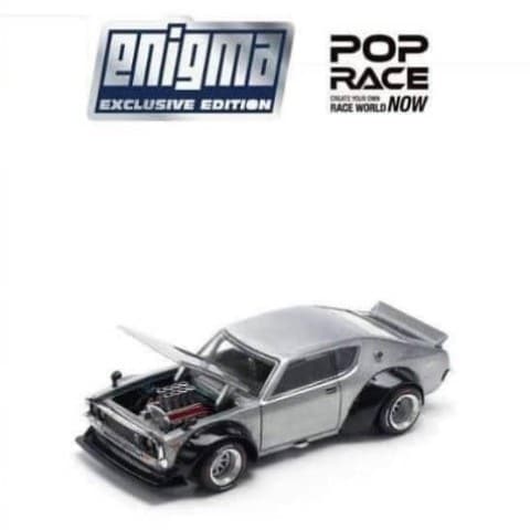 PRE005 Pop Race x Enigma 1:64 Nissan Skyline GT-R KPGC10 Hakosuka V8 Drift Modified Silver Shark Chase Color Blister Ver.