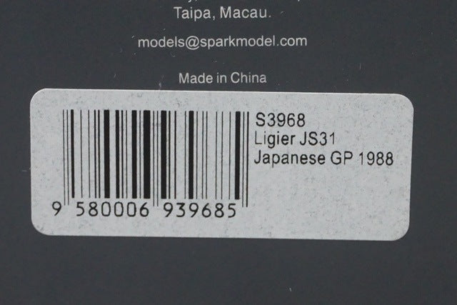1:43 SPARK S3968 Ligier JS31 #25 Japan GP 1988 R.Arnoux