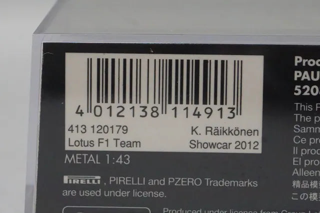 1:43 MINICHAMPS 413120179 Lotus F1 Team Show Car 2012 #9 K. Raikkonen