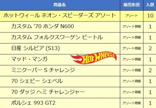 HLH72-986D Hot Wheels Neon Speeders Assortment 10 pcs / 1 BOX