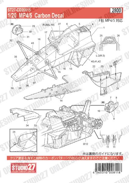 [ Back-order ] STUDIO27 CD20015 1:20 MP4/5 Carbon decal for FUJIMI [Carbon Decal]