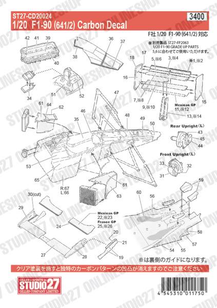 [ Back-order ] STUDIO27 CD20024 1:20 F190(641/2) Carbon decal for FUJIMI [Carbon Decal]