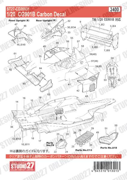[ Back-order ] STUDIO27 CD20031 1:20 CG901B Carbon decal forTAMIYA20028 [Carbon Decal]