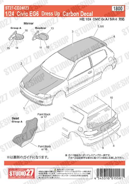 [ Back-order ] STUDIO27 1:24 Civic EG6 Dress Up Carbon decal for Hasegawa [Carbon Decal]