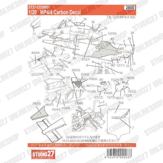 [ Back-order ] STUDIO27 CD20001 1:20 MP4/4 Carbon decal for TAMIYA [Carbon Decal]