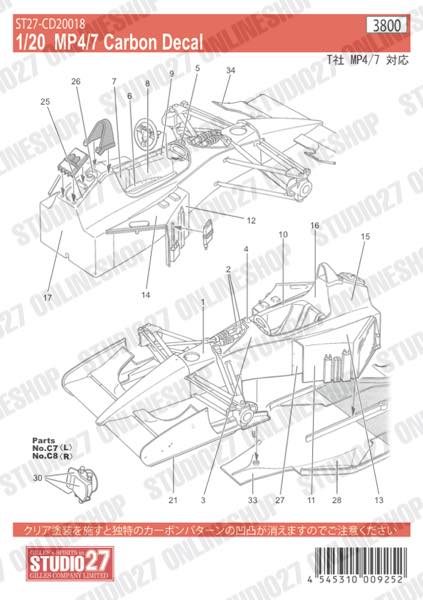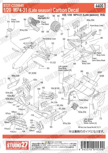 [ Back-order ] STUDIO27 CD20045 1:20 MP4-31 Late ver. Carbon decal for EBBRO [Carbon Decal]