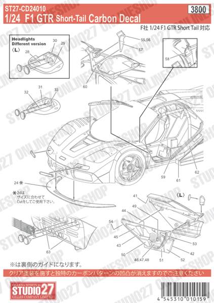 [ Back-order ] STUDIO27 CD24010 1:24 F1 GTR [Short Tail] Carbon decal for FUJIMI [Carbon Decal]