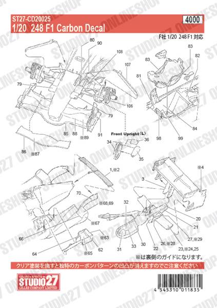 [ Back-order ] STUDIO27 CD20025 1:20 248F1 Carbon decal forFUJIMI [Carbon Decal]
