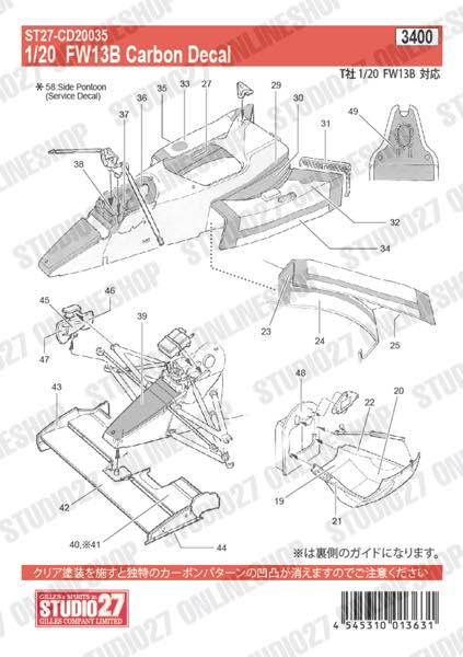 [ Back-order ] STUDIO27 CD20035 1:20 FW13B Carbon decal for TAMIYA20025 [Carbon Decal]