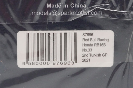 1:43 SPARK S7696 Red Bull Racing Honda RB16B 2nd Turkish GP M.Verstappen 2021 #33 model car