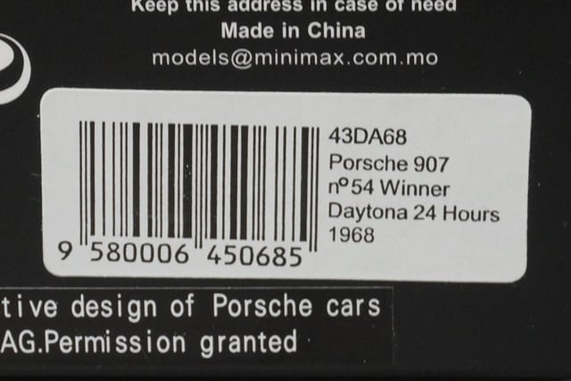 1:43 SPARK 43DA68 Porsche 907 Daytona 24H 1968 #54 model car