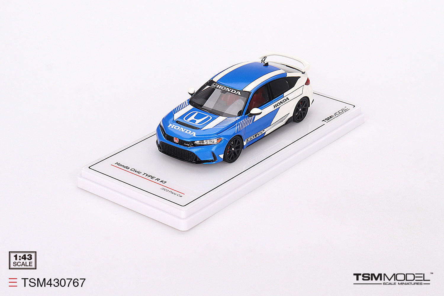 [ Back-order ] TSM TSM430767 1:43 Honda Civic Type R 2023 #3 Pace Car Blue model car