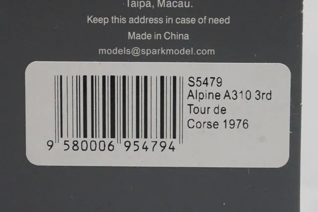 1:43 SPARK S5479 Alpine A310 #14 3rd Tour de Corse 1976