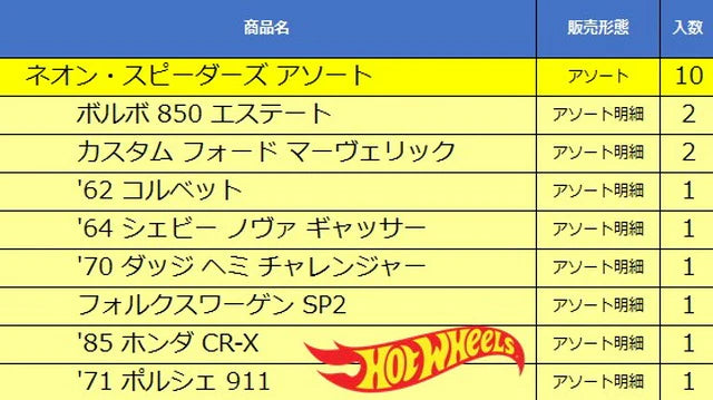 HLH72-986F Hot Wheels Neon Speeders Assortment (10 pieces per carton)